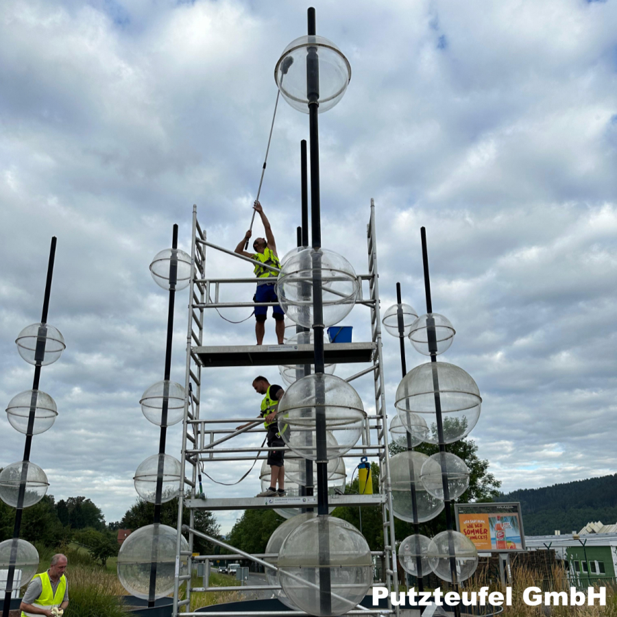 Schmalkalden glänzt zur 1150-Jahrfeier! - Die Mitarbeiter der Putzteufel GmbH haben die berühmten Kugeln am Waldquellkreisel wieder zum Strahlen gebracht.